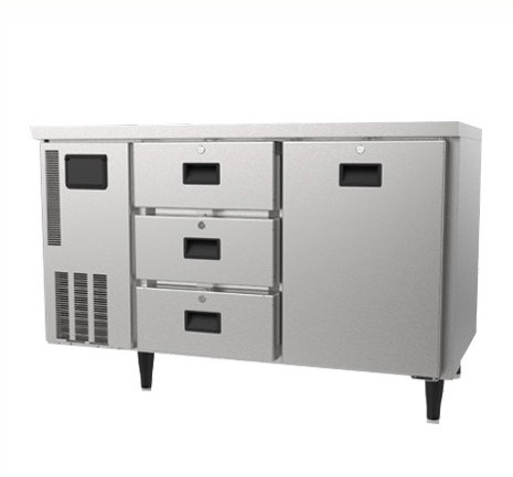🔹 Khác với các bàn mát truyền thống, mẫu RTDW-137MS4-3D có 3 ngăn kéo trượt riêng biệt và 1 cửa mở bên cạnh, cho phép phân loại thực phẩm theo nhóm: nguyên liệu tươi sống, đã sơ chế, hoặc thực phẩm đóng gói – giúp tiết kiệm thời gian khi thao tác.