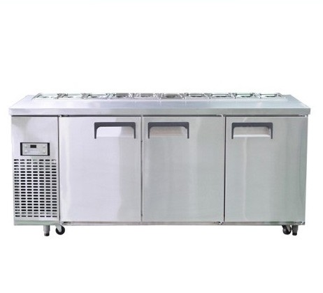 Khoang lạnh rộng rãi bên dưới bảo quản thực phẩm, mặt bàn inox có khay kèm nắp đậy giúp bạn chứa salad, rau củ, trái cây một cách khoa học và sạch sẽ.