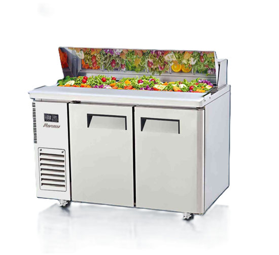 💡 NHR12-2 – Bàn mát salad 2 cánh tối ưu cho quầy bar, salad và mô hình F&B hiện đại.