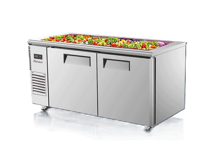 🥗 Salad bar – nhà hàng healthy: Dùng để bảo quản rau củ, salad, trái cây và topping. Hỗ trợ chế biến trực tiếp tại quầy, giúp món ăn luôn tươi mới, giữ được độ giòn và tính thẩm mỹ khi phục vụ khách.