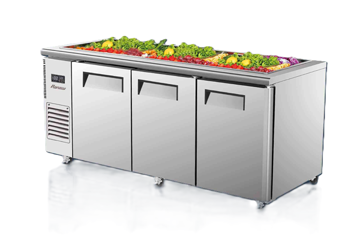 🥗 Salad bar – nhà hàng cao cấp: Bảo quản số lượng lớn rau củ, salad, trái cây và topping. Hỗ trợ chế biến trực tiếp tại quầy, đảm bảo món ăn luôn tươi ngon, đẹp mắt và đồng nhất chất lượng.
