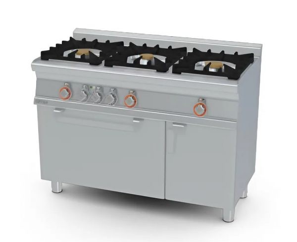 CFM3-612GEMV là thiết bị bếp Âu công nghiệp cao cấp, tích hợp 3 họng gas công suất lớn và lò nướng điện đa năng trong cùng một khối thiết bị.
