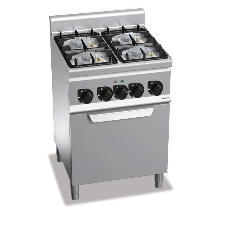 Bếp gas 4 bếp kèm lò nướng điện 1/1 G6F4PW+FE1 là thiết bị bếp công nghiệp cao cấp, kết hợp hoàn hảo giữa nấu bằng gas và nướng bằng điện trong cùng một hệ thống. Với tổng công suất gas 19 kW và lò nướng điện 3 kW, sản phẩm mang lại khả năng kiểm soát nhiệt chính xác, tiết kiệm không gian và nâng cao hiệu quả vận hành cho nhà hàng, khách sạn.