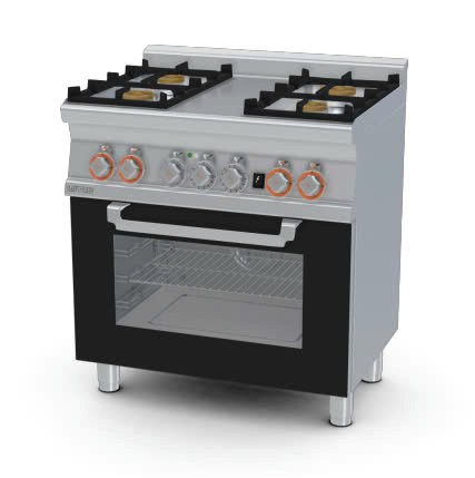 LOTUS CFM4-66GEM là dòng bếp Âu công nghiệp đa năng, tích hợp 4 họng đốt gas công suất cao cùng lò nướng điện tiện dụng trong cùng một thiết kế nhỏ gọn, chắc chắn.