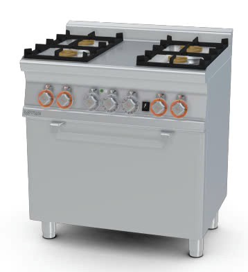 LOTUS CFM4-68GEM là dòng bếp Âu công nghiệp cao cấp, tích hợp 4 họng đốt gas công suất lớn cùng lò nướng điện đa chức năng trong cùng một thiết kế gọn gàng, chắc chắn, đạt tiêu chuẩn châu Âu.