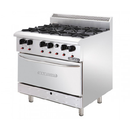 🧩 Cấu hình 6 họng đốt gas phía trên kết hợp 1 lò nướng gas phía dưới, cho phép đầu bếp thực hiện đồng thời nhiều công đoạn nấu và nướng, giúp tối ưu diện tích và quy trình chế biến.