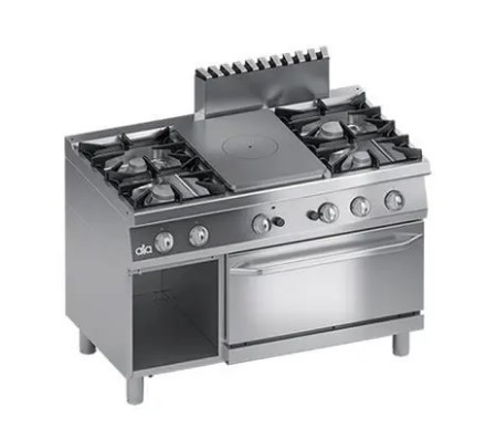 Ata K7GCTP15FF là dòng bếp Âu công nghiệp 4 họng có lò nướng dùng gas được thiết kế cho các khu bếp chuyên nghiệp yêu cầu độ bền cao, khả năng nấu – nướng đồng thời và kết cấu chắc chắn.