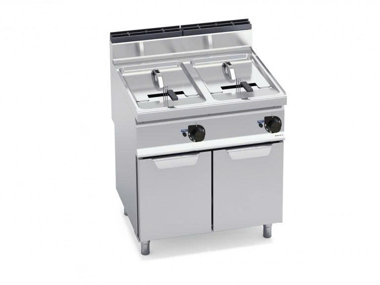 Bếp chiên gas có tủ GL18+18MI là thiết bị bếp công nghiệp cao cấp với thiết kế 2 bồn chiên độc lập dung tích lớn 18L + 18L, kết hợp công nghệ gia nhiệt gián tiếp giúp bảo vệ dầu và nâng cao chất lượng món ăn. Đặc biệt, thiết kế tích hợp tủ chứa bên dưới giúp tối ưu không gian, mang lại sự gọn gàng và chuyên nghiệp cho khu bếp.