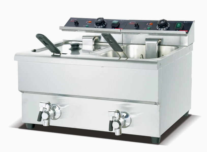 🔥 Nồi chiên ngập dầu 8L được thiết kế để chiên thực phẩm với 8 lít dầu mỗi bể, phù hợp cho gia đình hoặc các bếp nhỏ. Thiết bị hỗ trợ chiên đồng đều, giữ màu sắc và độ giòn cho nhiều loại thực phẩm như khoai tây chiên, cánh gà, nhân cá, tempura, v.v.
