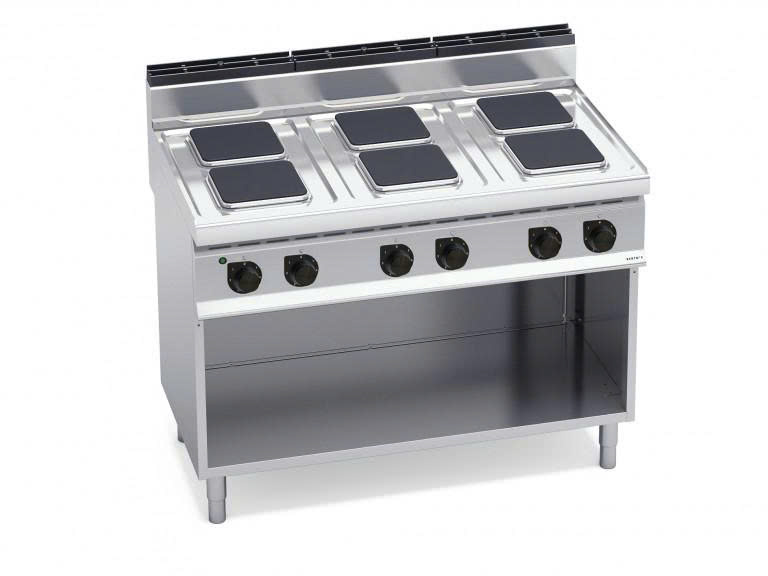 Bếp điện 6 mặt vuông kèm tủ E7PQ6M là thiết bị bếp công nghiệp cao cấp, được thiết kế dành cho các khu bếp có cường độ hoạt động cao. Với tổng công suất 15,6 kW cùng thiết kế tích hợp 6 vùng nấu + tủ chứa bên dưới, sản phẩm mang đến hiệu suất vượt trội, giúp tối ưu không gian và nâng cao hiệu quả vận hành cho nhà hàng, khách sạn và bếp công nghiệp quy mô lớn.