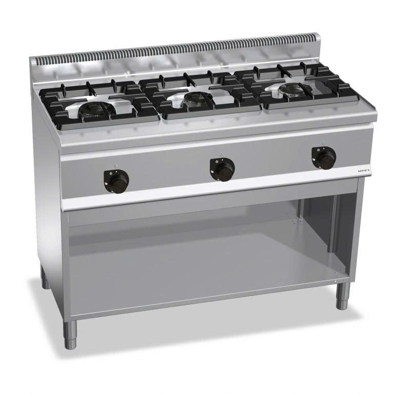 Bếp gas 3 bếp kèm tủ G6F3MH12 là thiết bị bếp công nghiệp cao cấp, được thiết kế dành cho các mô hình nhà hàng, quán ăn và bếp ăn quy mô lớn. Với tổng công suất mạnh mẽ 31 kW cùng thiết kế tích hợp tủ chứa bên dưới, sản phẩm giúp tối ưu không gian, nâng cao hiệu suất chế biến và vận hành chuyên nghiệp.