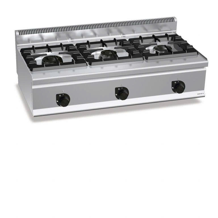 Bếp gas 3 bếp G6F3BH12 là thiết bị bếp công nghiệp công suất cao, được thiết kế với mặt bếp rộng rãi, phù hợp cho các nhà hàng, quán ăn cần chế biến khối lượng lớn trong thời gian ngắn. Với tổng công suất lên đến 31 kW, sản phẩm mang lại hiệu suất mạnh mẽ, ổn định và tiết kiệm nhiên liệu.