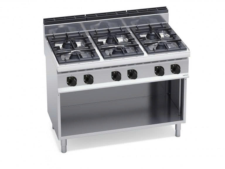Bếp gas 6 bếp kèm tủ G7F6M / G7F6MP là thiết bị bếp công nghiệp dạng đứng, tích hợp 6 họng bếp mạnh mẽ và khoang tủ chứa tiện lợi. Với tổng công suất 31,5 kW, sản phẩm giúp tăng năng suất chế biến, tối ưu không gian và mang lại sự chuyên nghiệp cho mọi gian bếp.