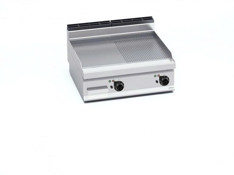 Bếp nướng điện E7FM8BP-2 là thiết bị bếp công nghiệp đa năng, kết hợp mặt phẳng và mặt có rãnh trên cùng một bề mặt nướng. Thiết kế đặt bàn nhỏ gọn nhưng sở hữu công suất mạnh mẽ 9.6 kW cùng chiều rộng 800mm, giúp tối ưu hiệu suất chế biến và linh hoạt trong vận hành, phù hợp cho nhà hàng, quầy bếp mở và mô hình F&B hiện đại.