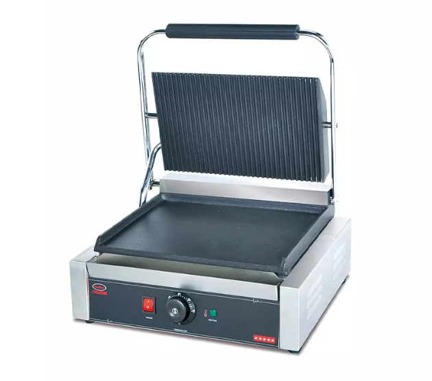 🔥EG-811B là thiết bị tấm đơn bằng điện, thiết kế mặt trên có rãnh – mặt dưới phẳng, phù hợp cho việc ép và nướng panini, sandwich, bánh mì kẹp, thịt lát mỏng và đồ ăn nhẹ.