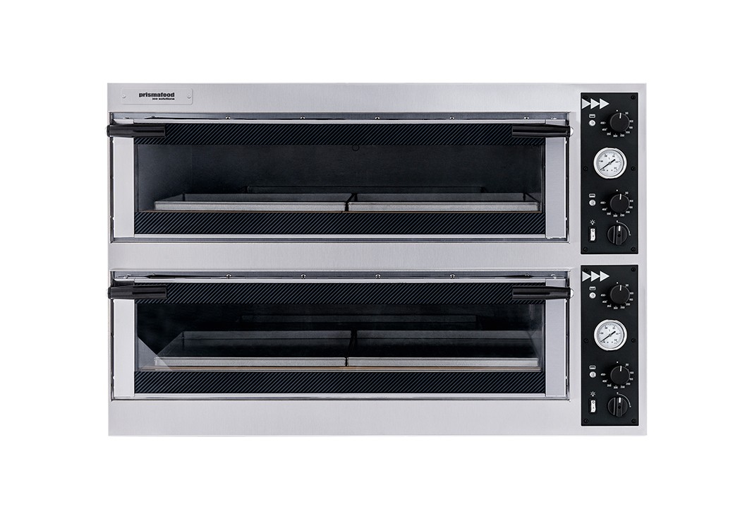🍕 Lò nướng 2 buồng nướng đồng thời 4 + 4 pizza Ø40 cm hoặc 2 + 2 khay 40×60 cm, phục vụ nhiều món cùng lúc.