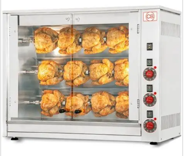 🔥 E-12P-S3 là lò nướng gà quay bằng điện với 03 thanh xiên, thiết kế chuyên nghiệp, phù hợp cho quán gà quay, cửa hàng tiện lợi, bếp nhà hàng và các mô hình kinh doanh cần chế biến số lượng lớn.