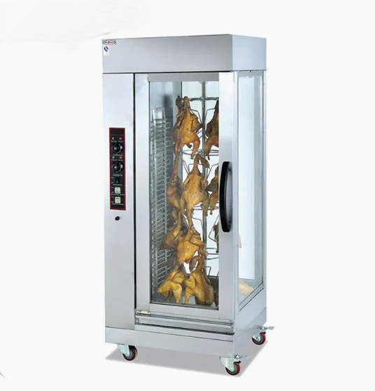 💡 Bóng đèn chịu nhiệt cao chiếu sáng trực tiếp, giúp nhân viên theo dõi quá trình nướng gà mọi lúc, đảm bảo chất lượng món ăn ổn định.