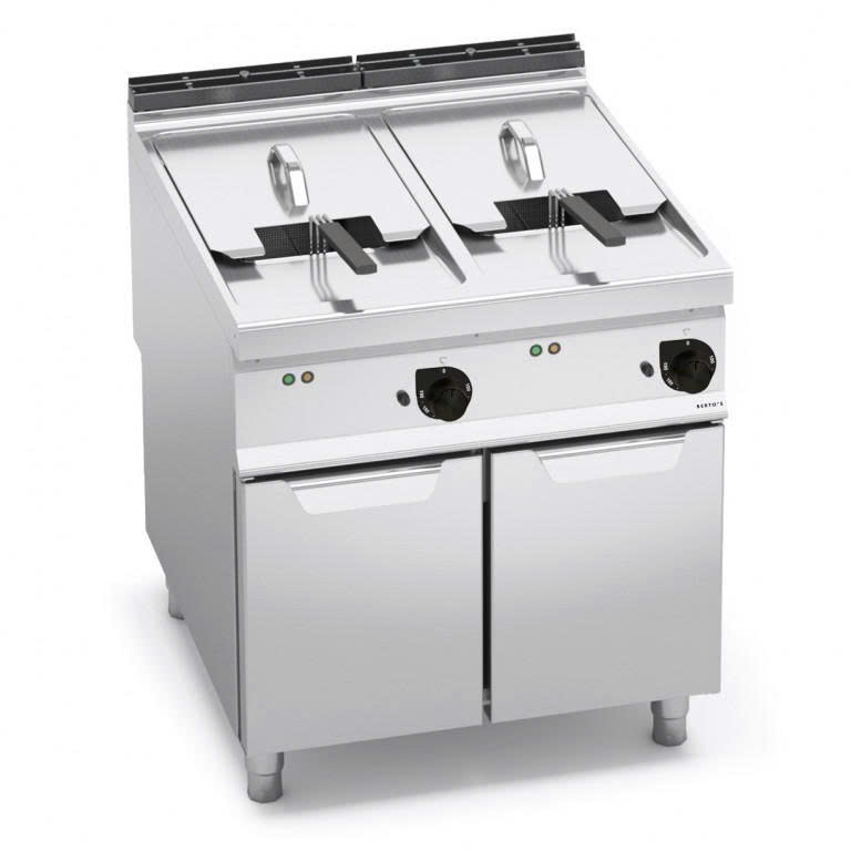 Máy chiên điện E9F22-8M phiên bản gắn trên tủ là thiết bị bếp công nghiệp cao cấp, sở hữu 2 khoang chiên độc lập dung tích 22+22L, đáp ứng nhu cầu chế biến số lượng lớn thực phẩm trong thời gian ngắn. Thiết kế tích hợp tủ bên dưới giúp tối ưu không gian lưu trữ, nâng cao hiệu quả vận hành và sự chuyên nghiệp cho khu bếp.