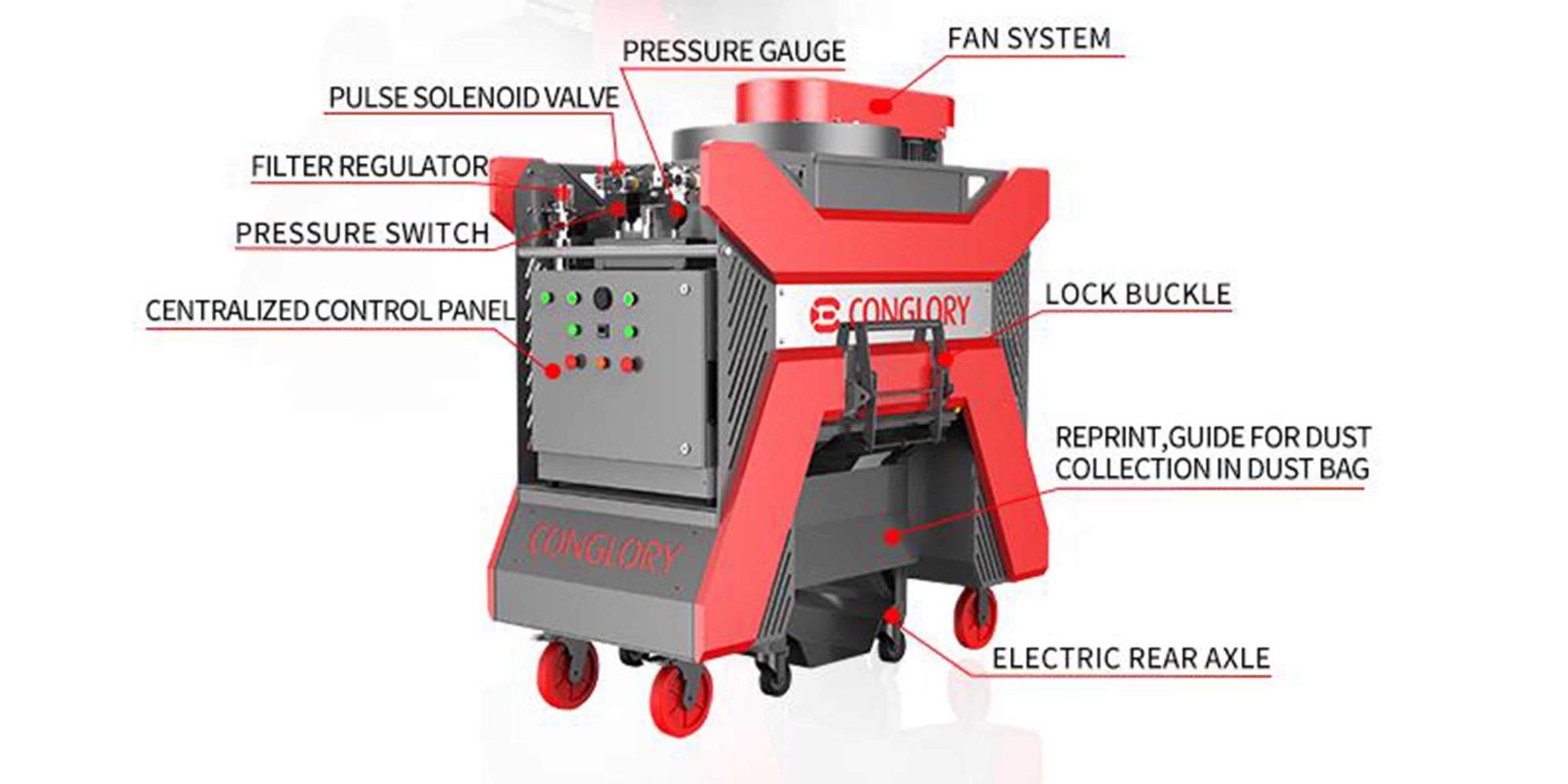 Máy hút bụi công nghiệp Conglory CD-556B là thiết bị chuyên dụng được thiết kế để kết hợp hoàn hảo với máy bắn bi, giúp thu gom bụi mịn, mảnh vụn và tạp chất phát sinh trong quá trình thi công sàn bê tông.