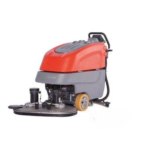 Thiết bị hoạt động theo nguyên lý chà sàn bằng 2 chổi ống kết hợp hút nước bẩn phía sau, giúp xử lý hiệu quả các vết bẩn cứng đầu như dầu mỡ, bụi công nghiệp và chất bám dính.