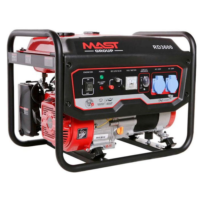 Mast RD3600 là dòng máy phát điện gia đình công suất 3kW, hoạt động bền bỉ, chạy êm, thích hợp làm nguồn điện dự phòng cho gia đình, văn phòng nhỏ hoặc các thiết bị điện thiết yếu khi mất điện. Máy vận hành hiệu quả với nguồn điện 220V/50Hz, đáp ứng nhu cầu chiếu sáng, quạt, tivi, tủ lạnh, máy giặt và điều hòa nhỏ (9000 BTU).