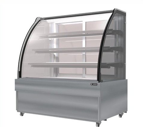🪟 Mặt kính cong 2 lớp trong suốt, trang bị công nghệ Low-E chống đọng sương, giúp trưng bày bánh bắt mắt và tiện lợi cho khách quan sát.