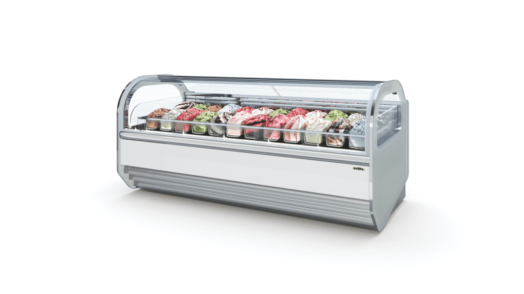 🏢 Karya Premium Vision là dòng tủ trưng bày kem cao cấp, được thiết kế cho các cửa hàng gelato, boutique kem và không gian bán lẻ yêu cầu khả năng hiển thị tối đa cùng thiết kế sang trọng.